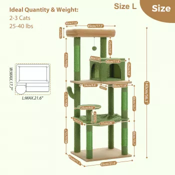 Luxury Multi-Level Solid Wood Cat Tree with Hammock & Cabinet