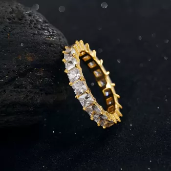 One Row Crystal Men's Ring - Hip Hop Iced Out CZ Pave Ring in Gold and Silver
