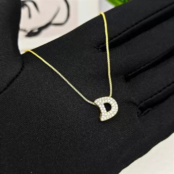 Personalized Bubble Letter Name Necklace with CZ Alphabet Initial Pendant
